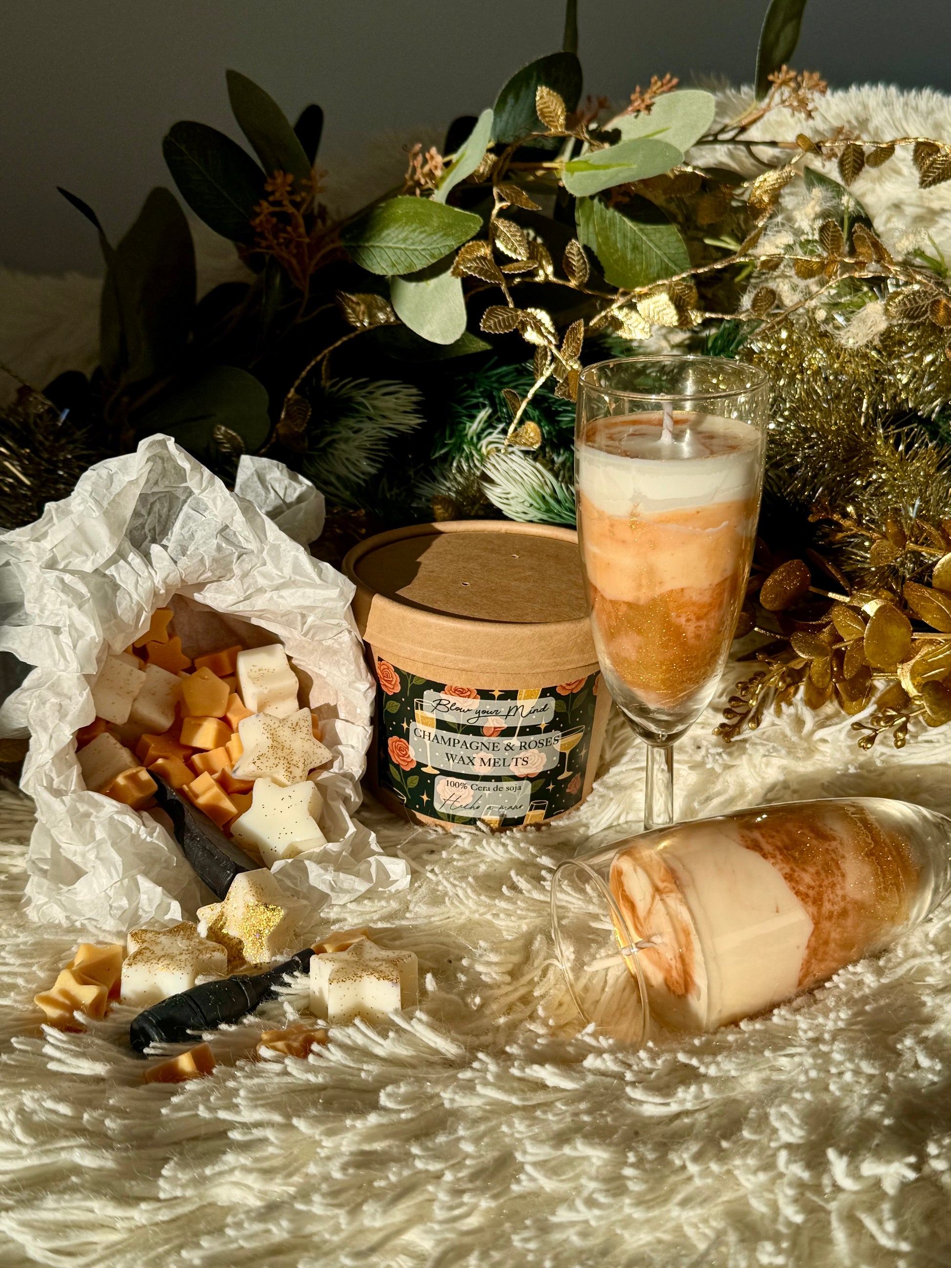 ⢠Wax melts artesanales ā Estrellas y botellitas con el aroma Champagne & Rosas.