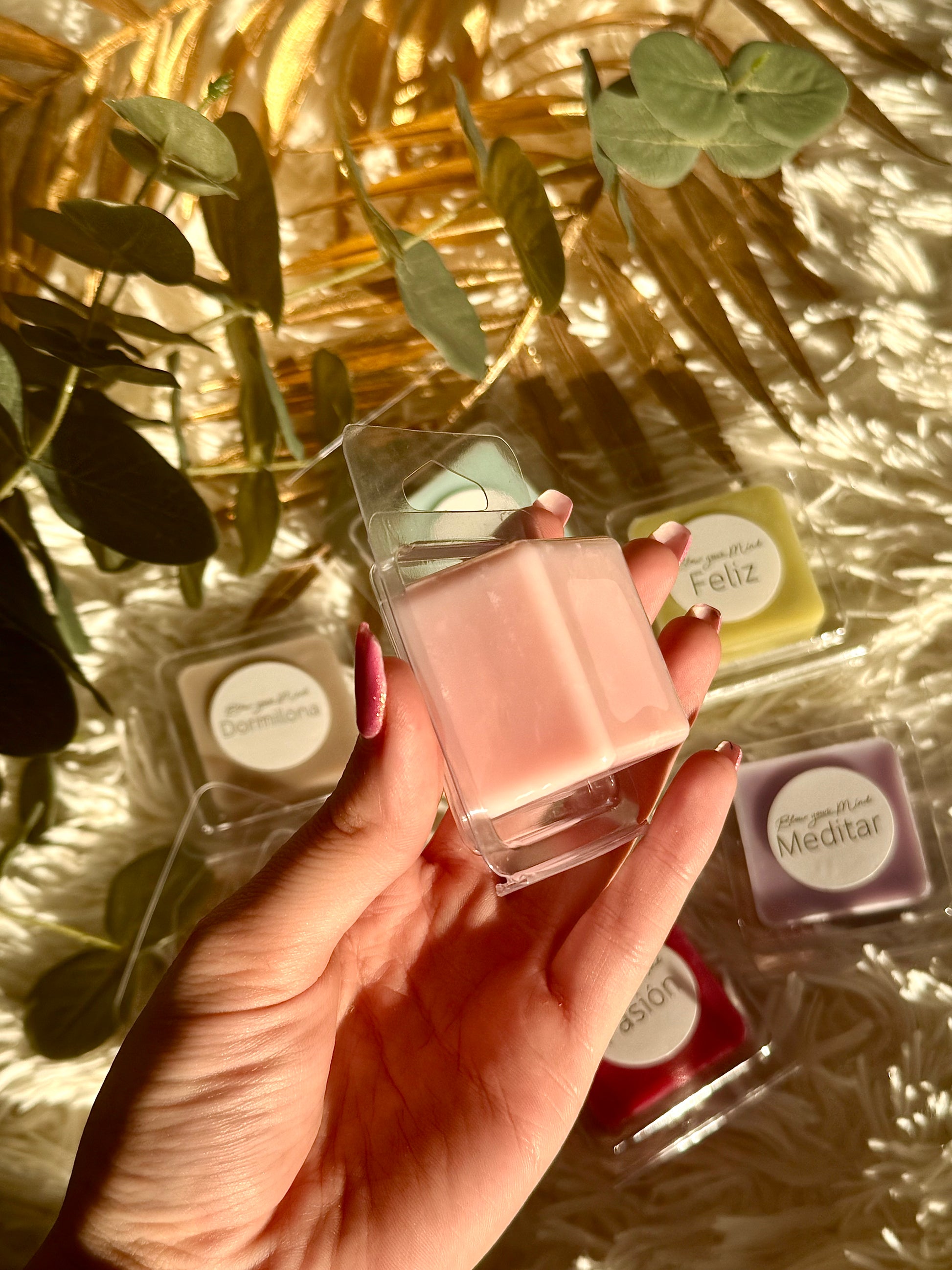 Los wax melts son pequeñas piezas de cera aromática que se derriten lentamente sobre un quemador para llenar tu espacio de calma, energía o inspiración… sin necesidad de encender una vela.