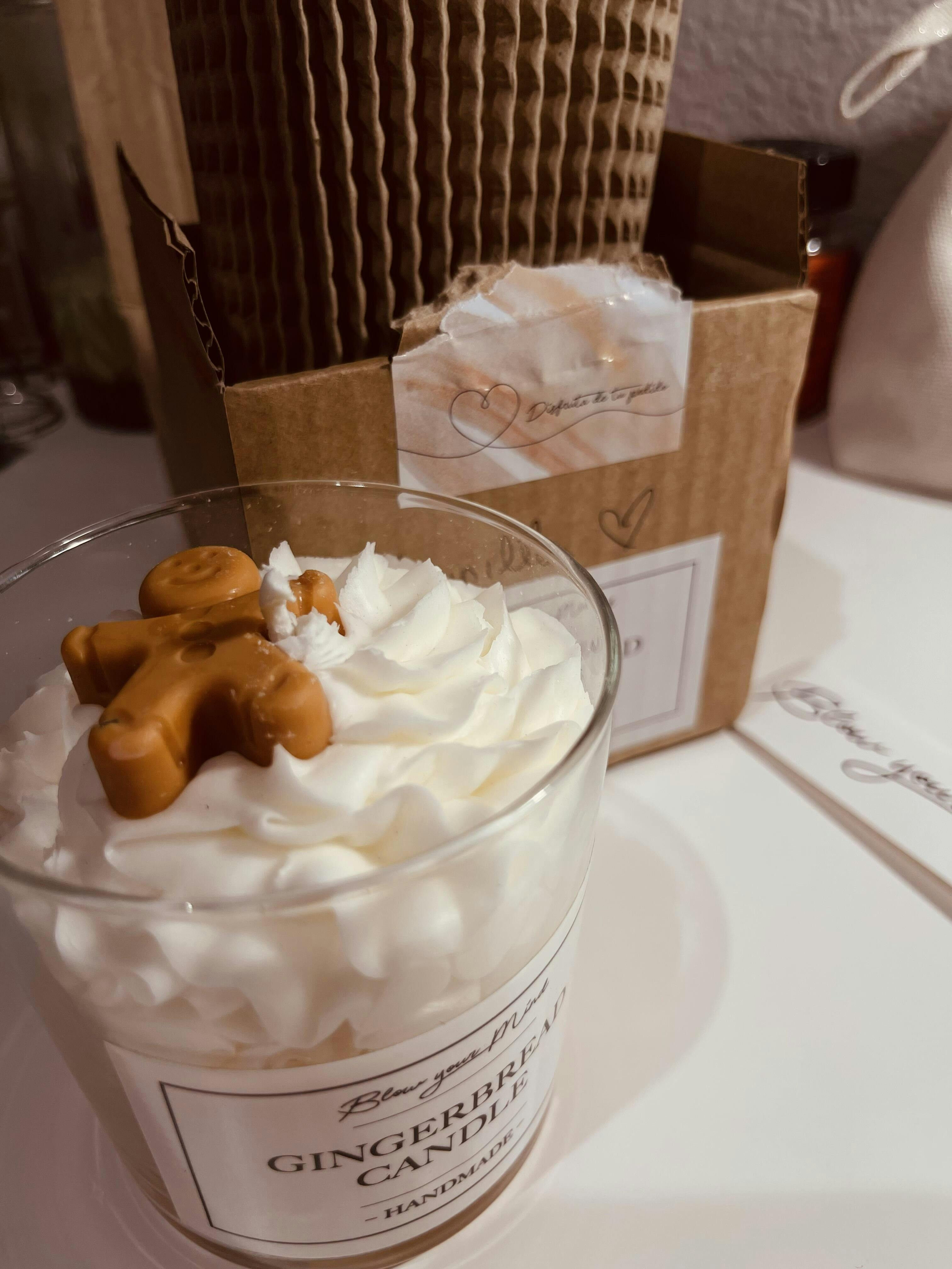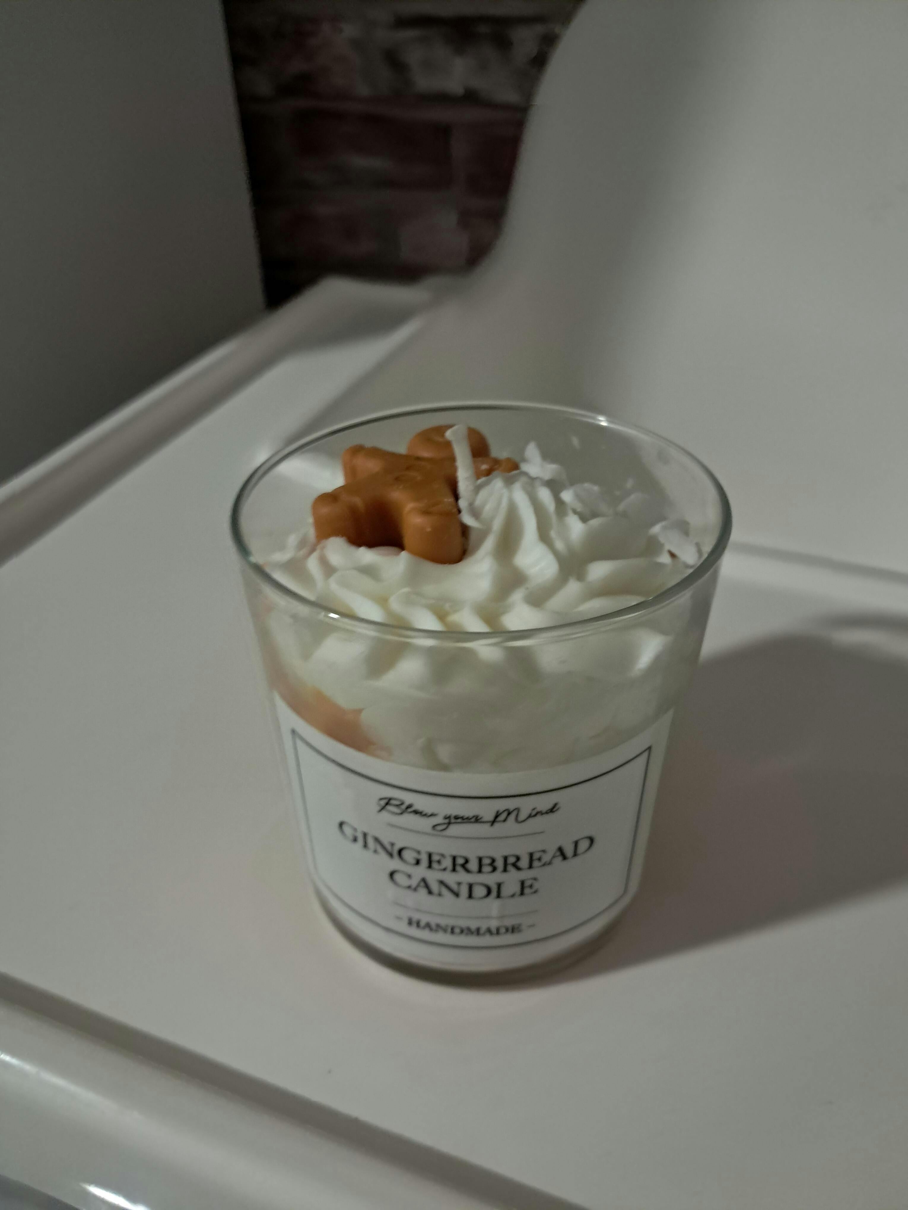 Decorada con figuras de galletas de jengibre en miniatura, esta vela en vaso es tan encantadora como aromática. Ideal para crear un ambiente hogareño y festivo, ¡y tan bonita que parece un postre!🧁